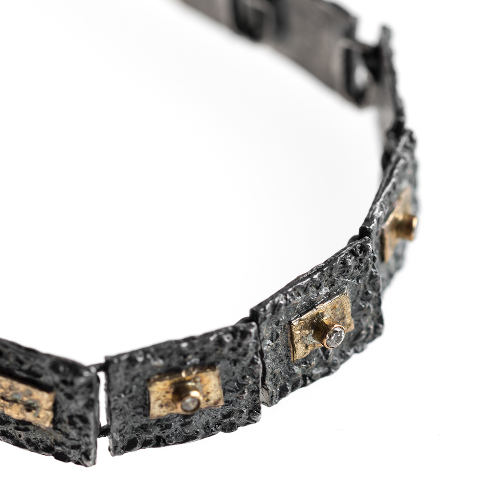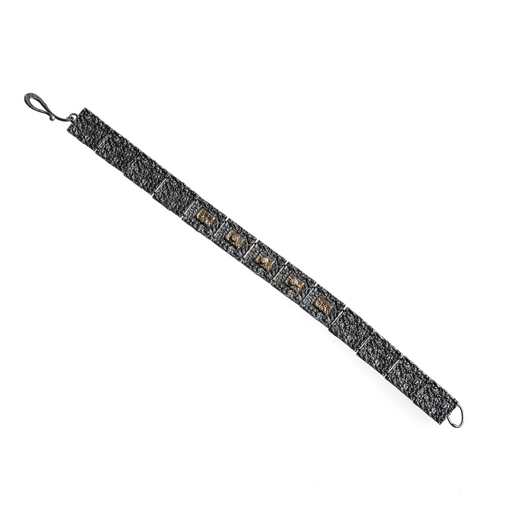Bracelet in Oxidized Silver 925 with Yellow Gold 750 and Diamonds