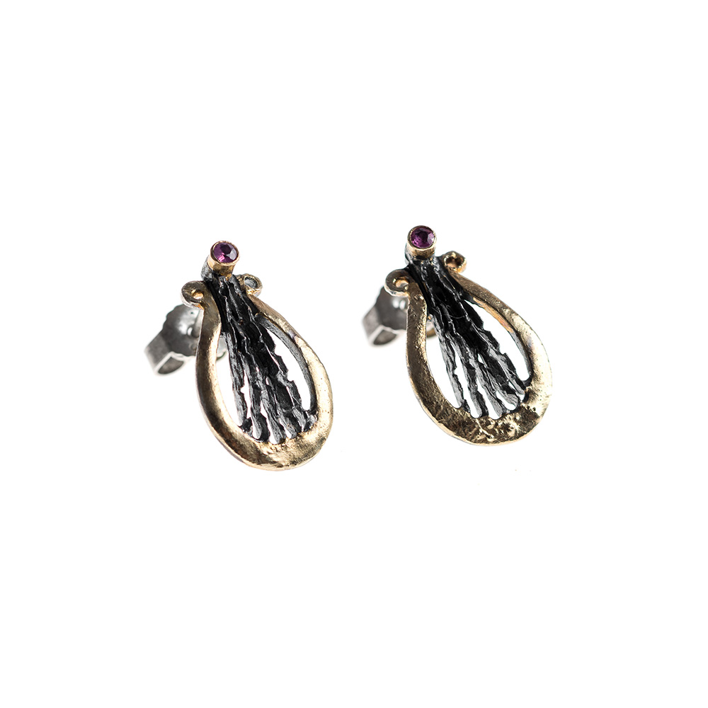 Earrings in Oxidized Silver 925 with 750 Yellow Gold and Rubies