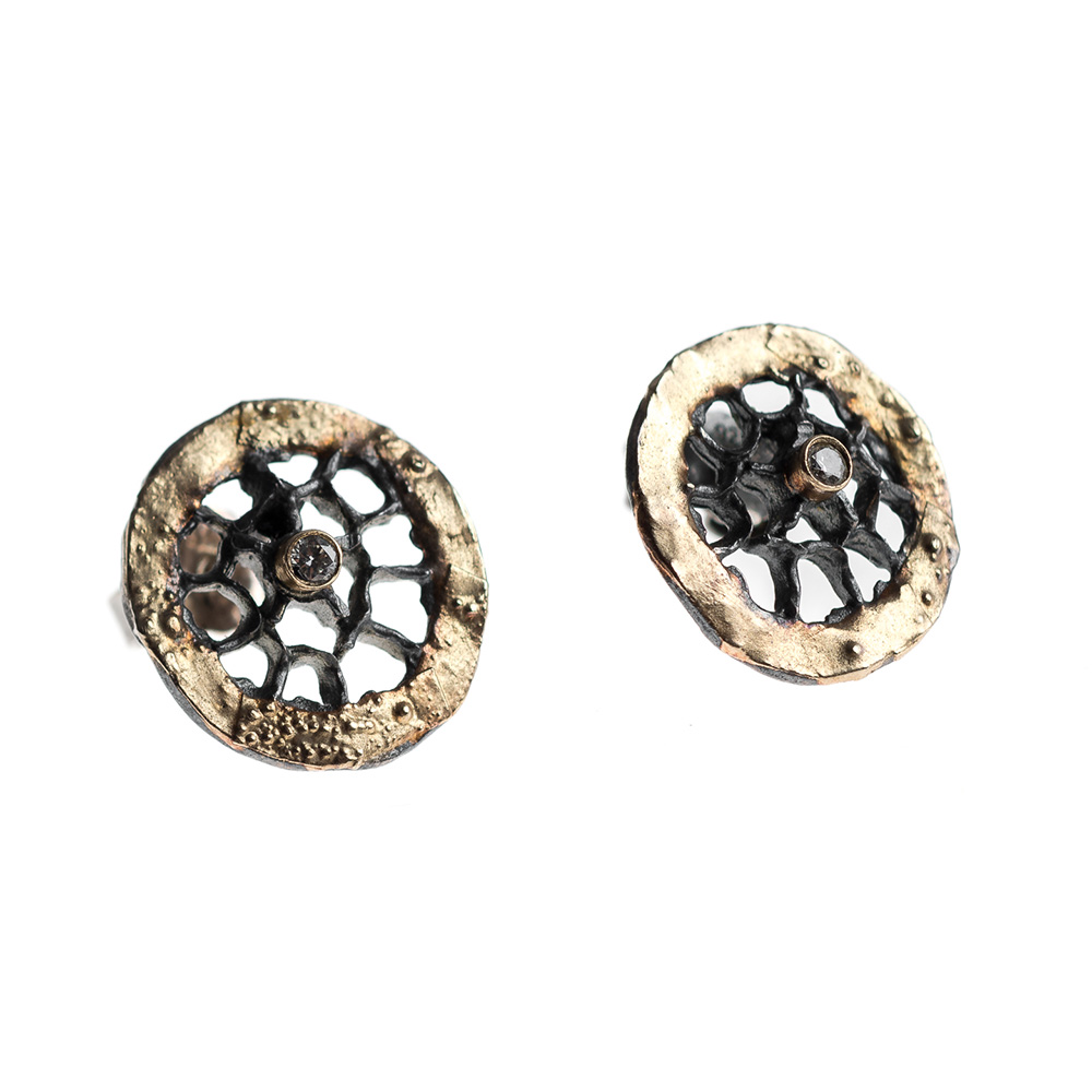 Earrings in Oxidized Silver 925 with Yellow Gold 750