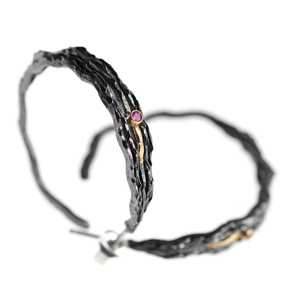 925 Oxidized Silver with 750 (18K) Yellow Gold