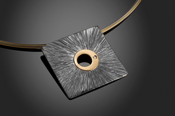 Oxidized Silver 925 with Yellow Gold 750 (18K) and Diamond