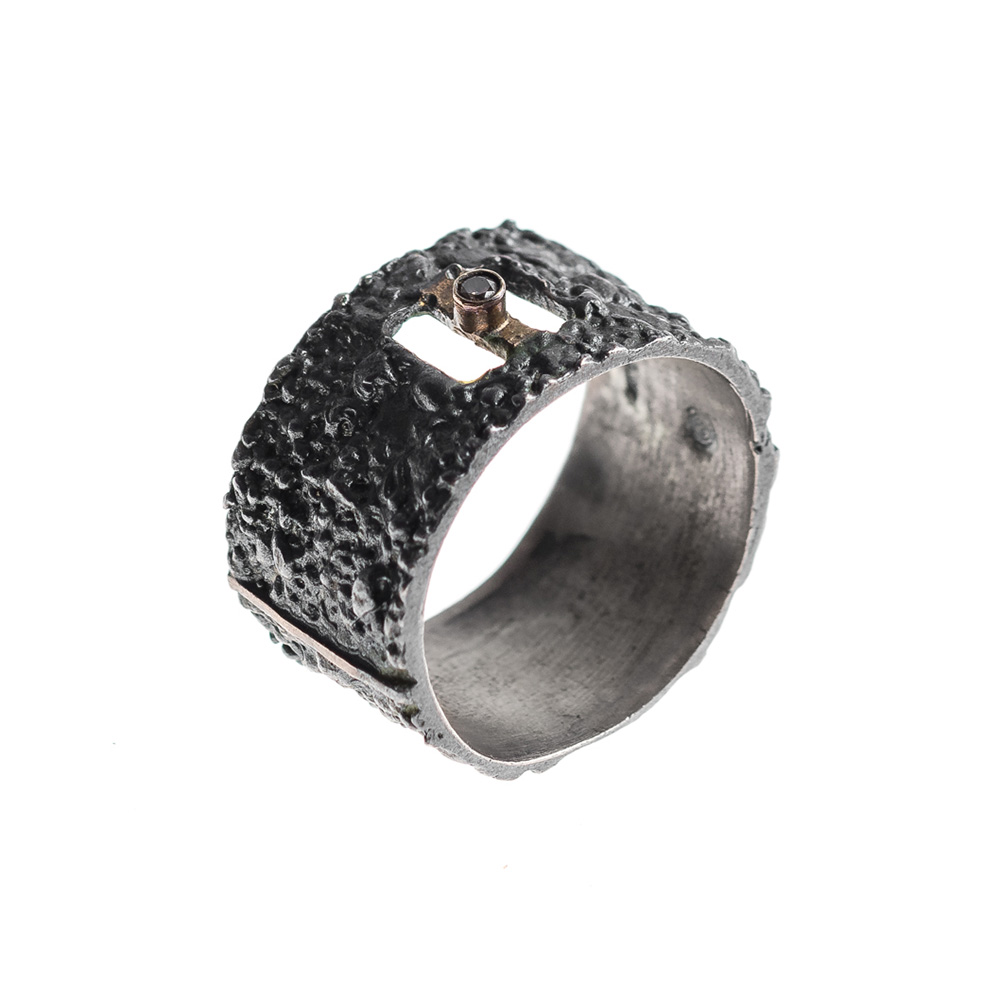 Ring in Oxidized Silver 925 with Diamond