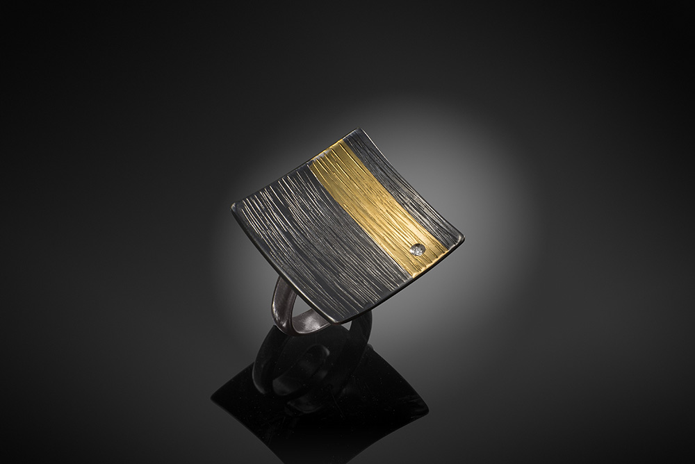 Oxidized Silver 925 with Yellow Gold 750 (18K) and Diamond