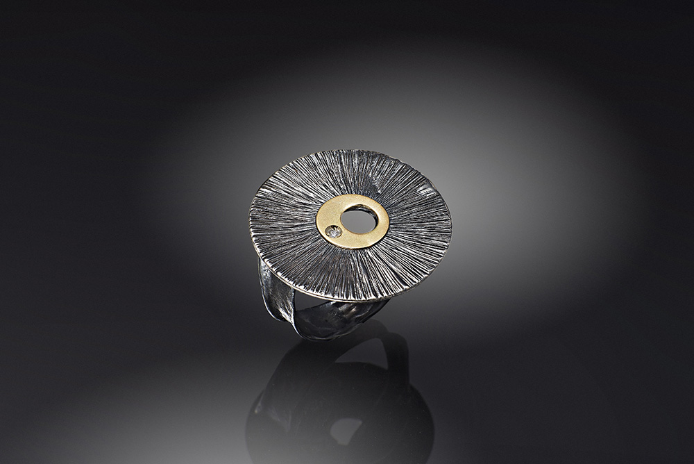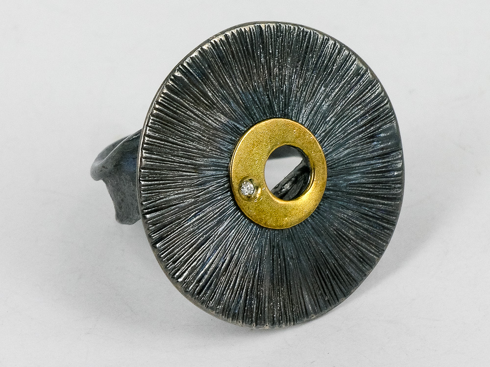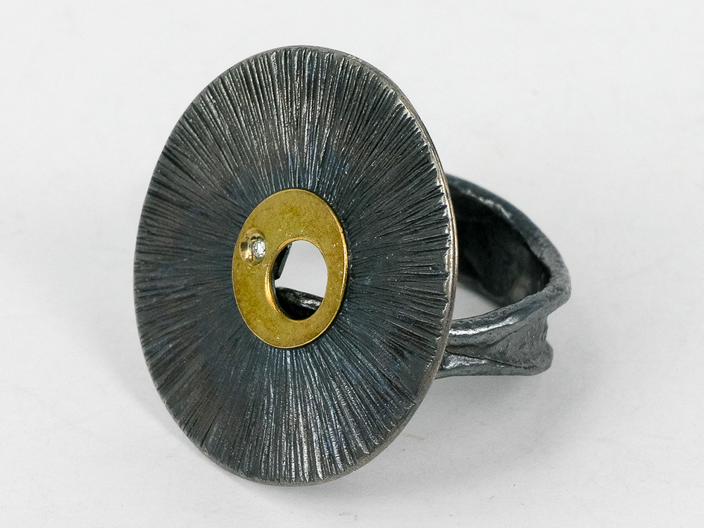 Ring in Oxidized Silver 925 with Yellow Gold 750 (18K) and Diamond