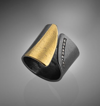 Ring in Oxidized Silver 925 with Yellow Gold K22 and Diamonds