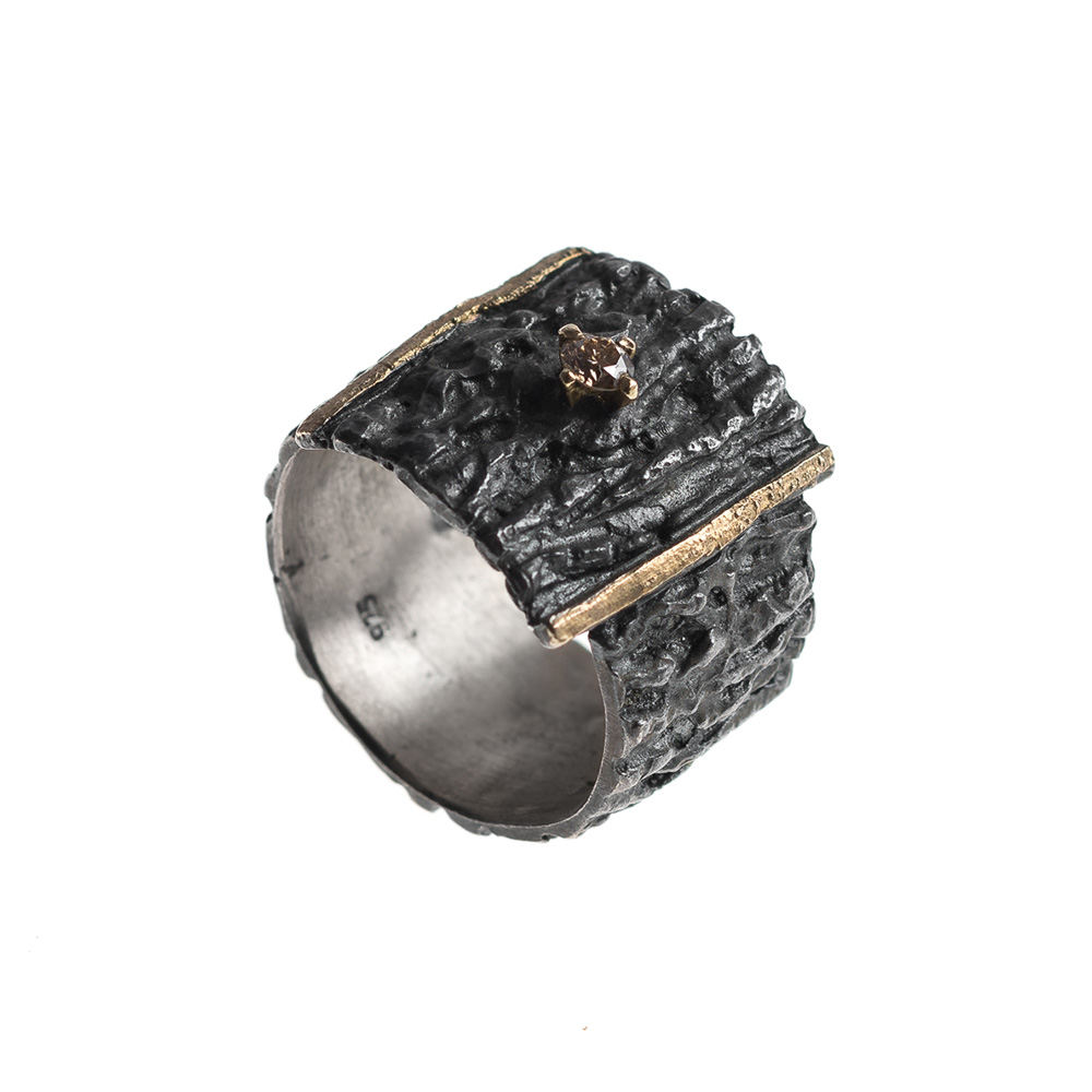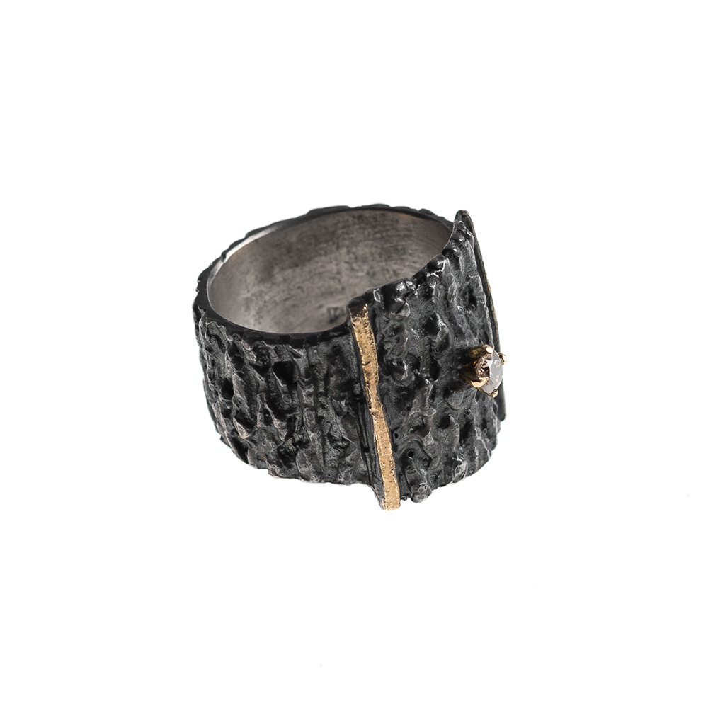 Ring in Oxidized Silver 925 with Yellow Gold 750 and Diamond